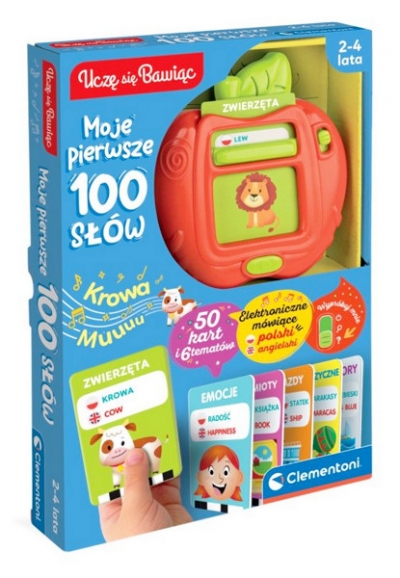 Interaktywna zabawka edukacyjna pomaga dziecku poznawać pierwsze słowa w przyjazny i angażujący sposób. Dzięki połączeniu kolorowych ilustracji i dźwięków maluch może odkrywać nazwy zwierząt, przedmiotów, emocji czy instrumentów, ucząc się zarówno w języku polskim, jak i angielskim. Forma przypominająca niewielkie urządzenie zachęca do samodzielnej zabawy i częstego sięgania po kolejne karty. Zabawa polega na dopasowywaniu kart i słuchaniu odpowiednich dźwięków oraz nazw, co wspiera rozwój mowy