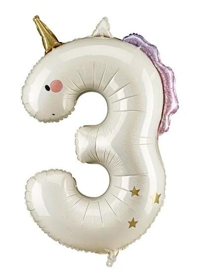Nazwa: Balon foliowy Cyfra 3 Jednorożec 93cm