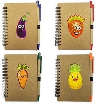 Odkryj magię zapisywania pomysłów z naszym wyjątkowym notesem, który łączy w sobie praktyczność i radosny design. Każdy egzemplarz zdobi sympatyczna postać uśmiechniętego owocu lub warzywa, wprowadzając pozytywną energię do codziennych szkolnych obowiązków i domowej zabawy. Okładka wykonana z estetycznego, ekologicznego kartonu nadaje produktowi nowoczesny i naturalny charakter, który świetnie wpisuje się w aktualne trendy papiernicze.