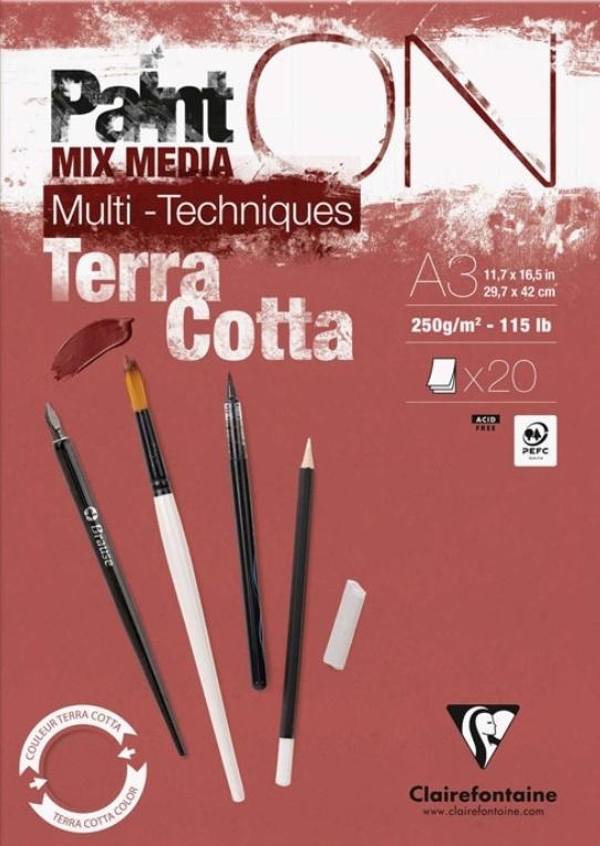 Papier Paint`ON(R) do różnych technik malarskich (Mix-Media), o strukturze lekko ziarnistej. O barwie terakoty.