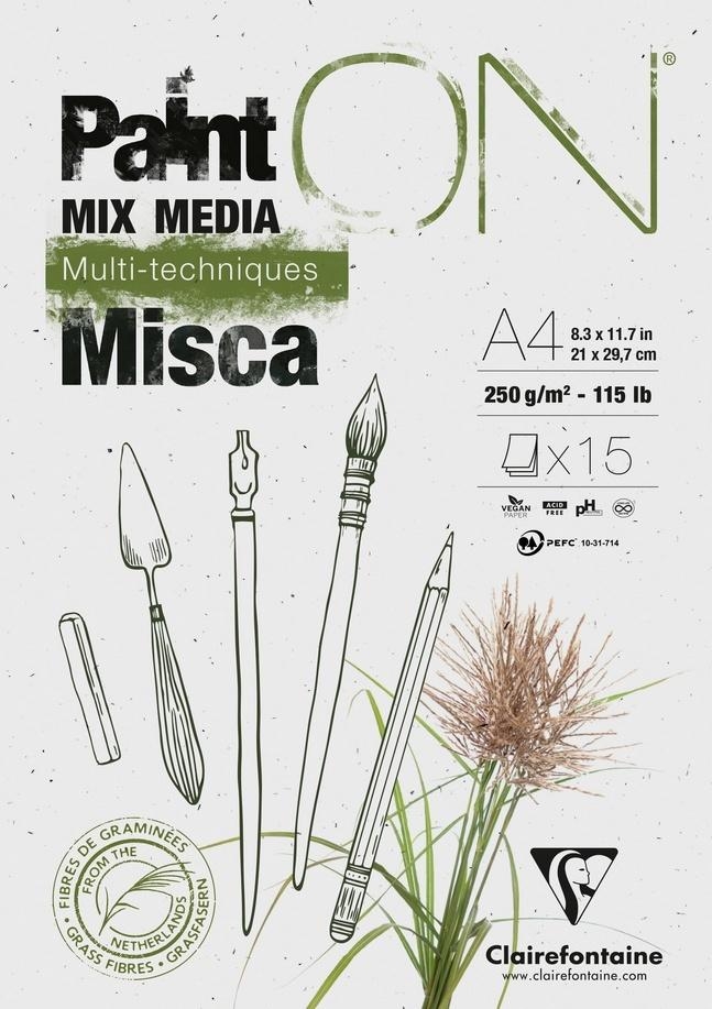 Papier Paint`ON(R) do różnych technik malarskich (Mix-Media), produkowany z ozdobnej, szybko rosnącej trawy zwanej Miskant (Miscanthus) zbieranej między innymi w Holandii.