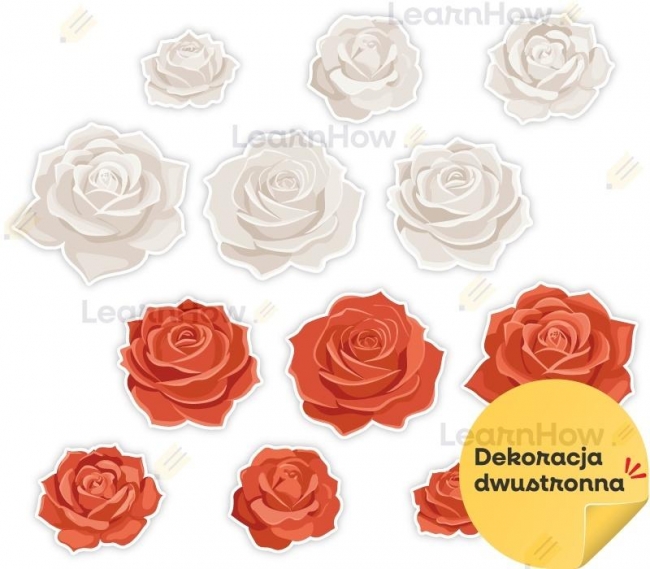Opis: Dekoracja patriotyczna róże białe i czerwone 12el
