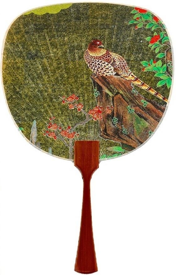 Elegancki japoński karnet premium z piękną, artystyczną ilustracją. Przedstawia tradycyjny japoński wachlarz (uchiwa) w delikatnym złocisto-żółtym kolorze. Na powierzchni wachlarza znajduje się subtelna, malownicza scena. Samotna postać w tradycyjnym stroju stojąca wśród wysokich traw i polnych kwiatów. W tle widoczny jest stary, sękaty pień drzewa lub skała, co nadaje kompozycji spokojny, kontemplacyjny i poetycki charakter. Karnet w zestawie z kopertą, bez tekstu w środku.