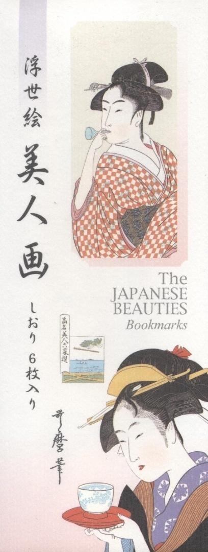 Elegancki japoński zestaw zakładek premium z piękną, artystyczną ilustracją.Zestaw zawiera 6 różnych zakładek do książki, inspirowanych klasycznym japońskim drzeworytem ukiyo-e. Przedstawiony wzór ukazuje dwie piękne kobiety w tradycyjnych kimonach. Górna postać gra na shamisenie, dolna z gracją trzyma filiżankę herbaty. Smukły format, subtelny jasny pasek z eleganckimi japońskimi napisami. Zestaw w ochronnej kopercie.
