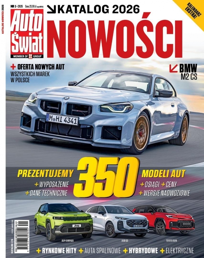 Katalog "Nowości 2026" trafił właśnie do sprzedaży. To kolejna edycja naszej flagowej publikacji, którą wydajemy od blisko 30 lat. Już tradycyjnie, w katalogu przedstawiamy pełną ofertę samochodów osobowych dostępnych na polskim rynku. Znajdziecie w nim recenzje, wersje silnikowe i wyposażeniowe, ceny, a także dane techniczne, takie jak: osiągi, wymiary, rozstaw osi czy pojemności zbiornika paliwa i bagażnika. Dowiecie się, ile kosztują dodatki chętnie wybierane przez kupujących. Wszystko w jednym miejscu i podane w bardzo przystępny sposób.