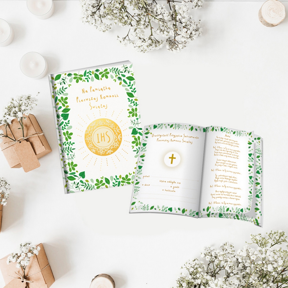 Ksiażeczka A5 Pamiątka Komunijna. Złoty opłatek