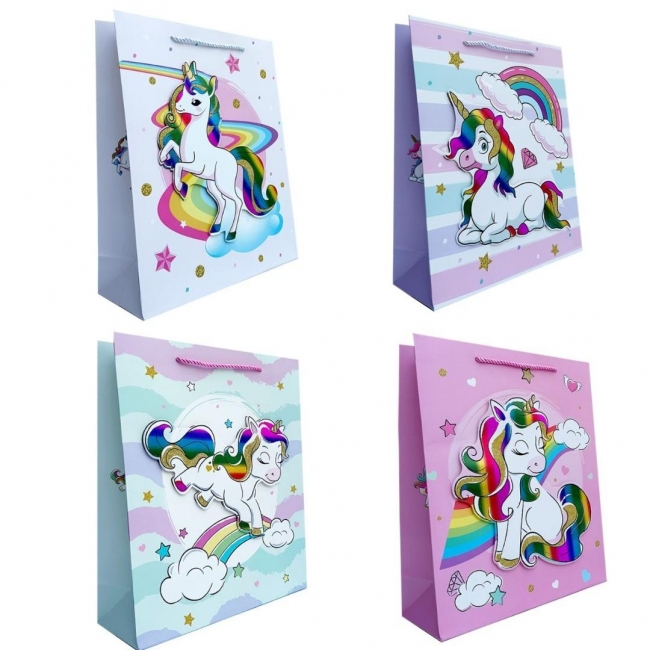 Opis: Torebka prezentowa dziecięca M Jednorożec mix