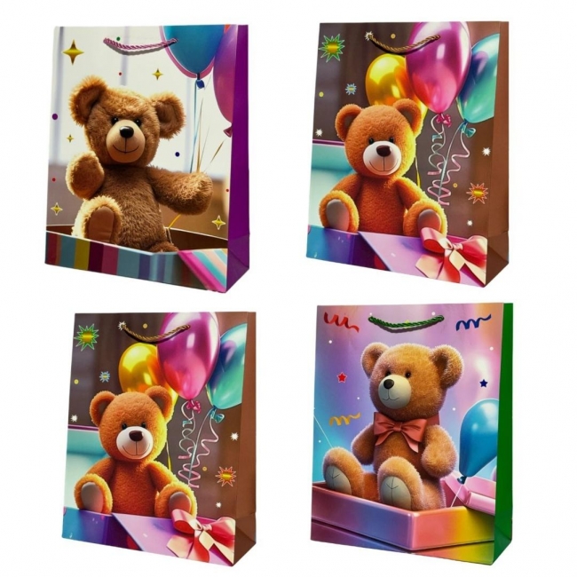 Opis: Torebka prezentowa dziecięca M Miś z balonami mix