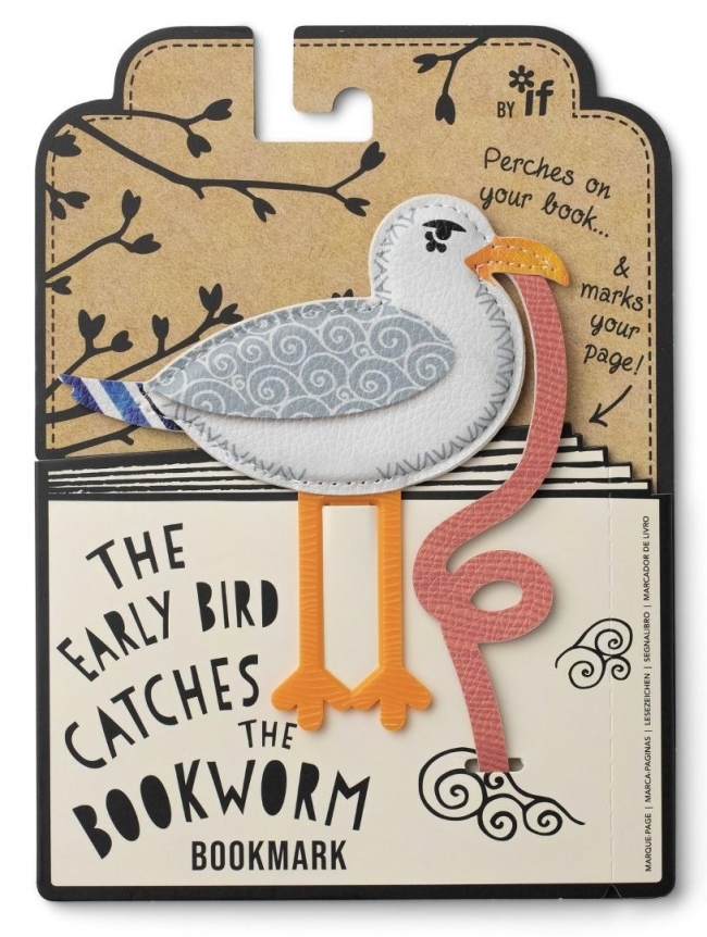 The Early Bird Catches the Bookworm - zakładka do książki w kształcie uroczego ptaszka z miękkiej, pikowanej skóry ekologicznej. Sprytne śmieszne nóżki działają jak klips - "przesiada się" na stronę na końcu książki, a robaczek wisi i elegancko oznacza miejsce. Idealny prezent dla książkowych robaków i miłośników ptaków. Zabawny, praktyczny i po prostu uroczy.