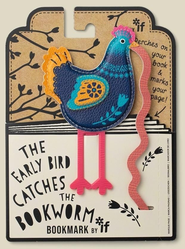 The Early Bird Catches the Bookworm - zakładka do książki w kształcie uroczego ptaszka z miękkiej, pikowanej skóry ekologicznej. Sprytne śmieszne nóżki działają jak klips - "przesiada się" na stronę na końcu książki, a robaczek wisi i elegancko oznacza miejsce. Idealny prezent dla książkowych robaków i miłośników ptaków. Zabawny, praktyczny i po prostu uroczy.