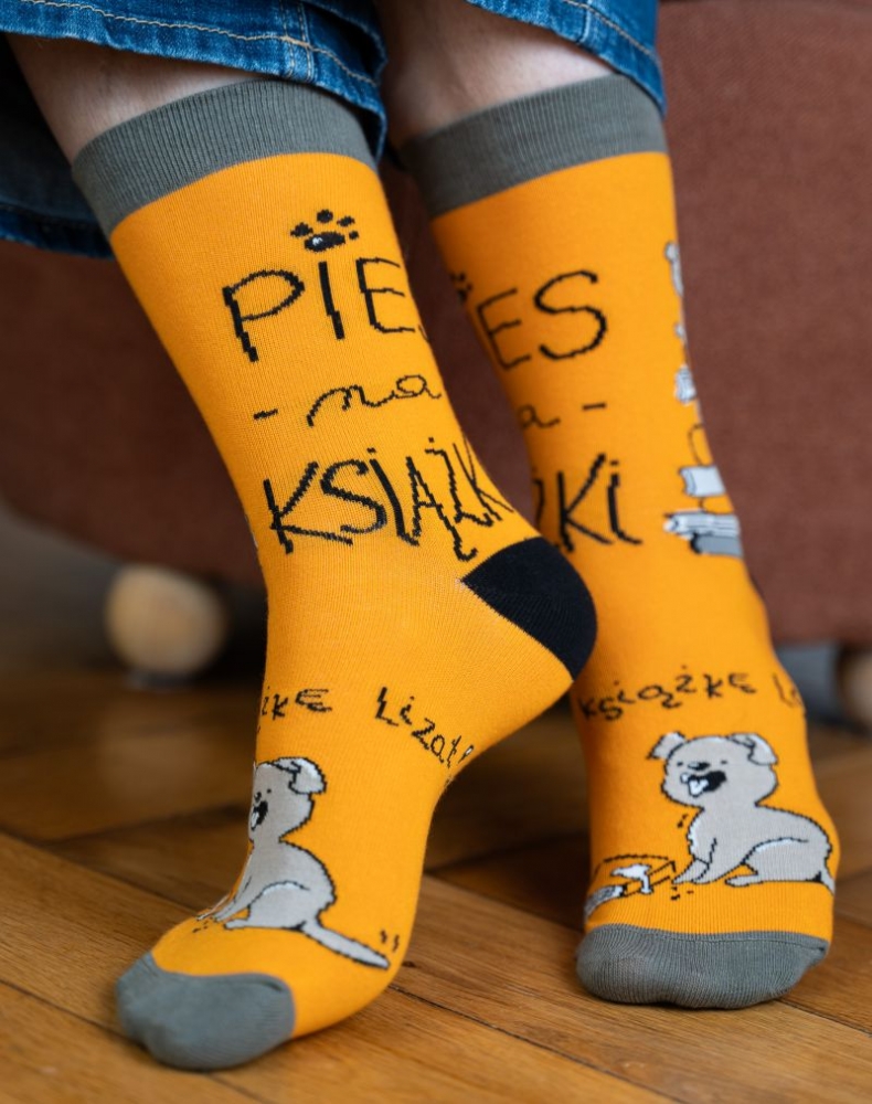 Wchodzisz do księgarni, jak do siebie, bo wiesz, że żadna książka Ci się nie oprze? To znak, że to skarpetki dla Ciebie! To produkt dla prawdziwych wyjadaczy w czytaniu i dla tych, którzy równie mocno kochają psy, co książki.