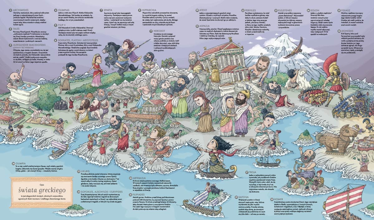 Spektakularne, pełne akcji mapy, dziwaczne fakty, humorystyczne szczegóły i fascynujące historie sprawią, że książka zachęci cię do dalszych poszukiwań informacji o niesamowitych (a niekiedy przerażających) dziejach ludzkości.