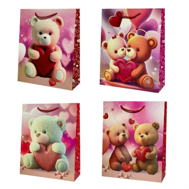 Opis: Torebka prezentowa dziecięca M Miś z sercem mix