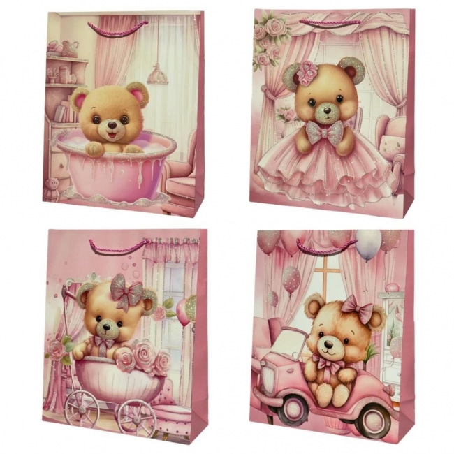 Nazwa: Torebka prezentowa dziecięca L Miś dziewczynka mix