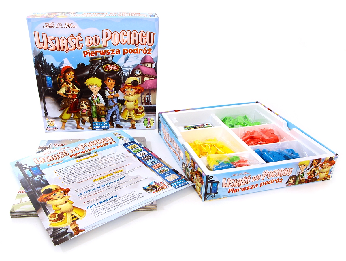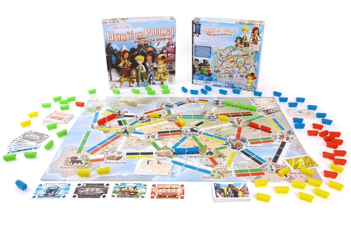 Wsiąść do Pociągu: Pierwsza podróż to łatwa do nauczenia i szybka odsłona popularnej serii gier rodzinnych, doskonała, żeby wprowadzić do niej młodszych graczy. Podczas zabawy dzieci i rodzice będą zbierali specjalne, kolorowe karty platform, które pozwolą im zajmować kolejne odcinki na mapie Europy.
