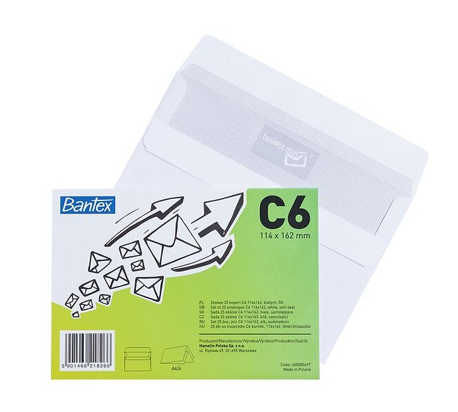 Szczegóły: Koperta Biała Bantex C6 SK, 50 szt. - biała