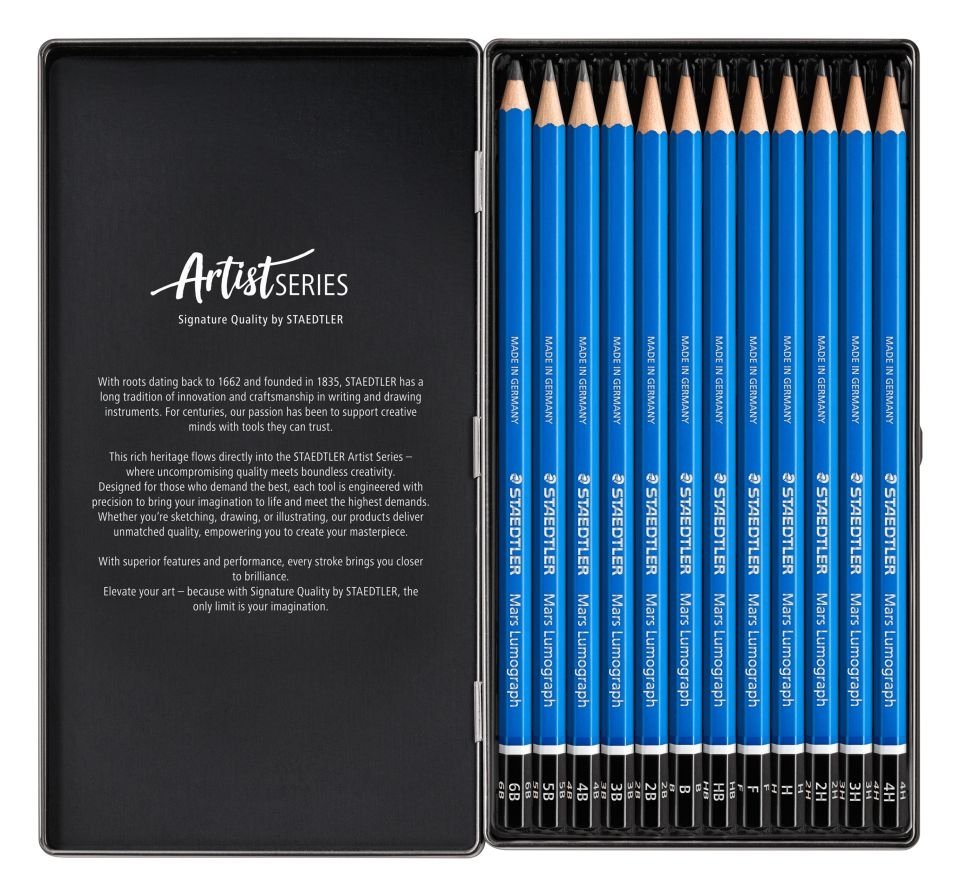 Zestaw ołówków Staedtler Mars Lumograph w metalowym opakowaniu, 12 szt. (6B-4H)