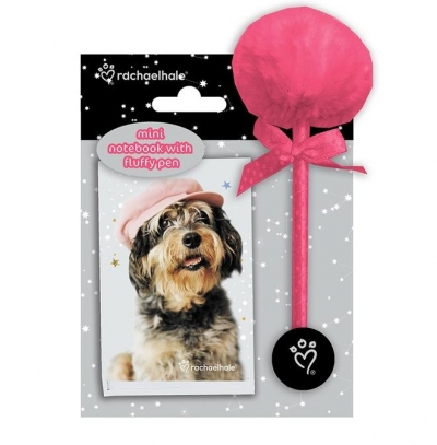 Zestaw notesik w twardej oprawie o wymiarach 7.5x11 cm, papier 70 g, 80 kartek z zadrukiem wewnętrznym oraz długopis z pomponem. Pakowany na blistrze