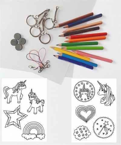 "Zmniejsz Mnie" to zestaw do tworzenia ozdób z folii termokurczliwej.