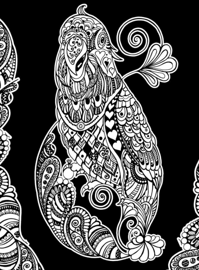 Wypukłe linie ułatwiają nie wychodzenie za linie, a na głębokiej matowej czerni nie widać drobnych potknięć przy kolorowaniu. Welwet nałożony jest na papier przyklejony do sztywnej tektury, dzięki czemu obraz nie wymaga ramki jeśli zdecydujemy się go powiesić na ścianie.