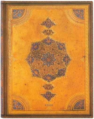 Kalendarz na rok 2022, 12-miesięczny ULTRA z kolekcji ekskluzywnej marki Paperblanks. Okładka z pięknymi, filigranowymi, symetrycznymi wzorami charakterystycznymi dla dynastii Safawidów. W środku znajdziemy miejsce na codzienne wpisy, notatki, planery, dwie satynowe wstążki, mini kalendarze, międzynarodowe numery kierunkowe, miejsce do wpisania swoich ważnych numerów, oznaczone wybrane święta międzynarodowe i wiele innych przydatnych informacji. Każdy dzień jest na osobnej stronie, soboty i niedziele są razem. Opisy są w języku angielskim. Kalendarz posiada 368 zszywanych stron, format 180x230mm, gramatura 80 gsm. Oprawa twarda. Na końcu po wewnętrznej stronie okładki jest koperta na luźne notatki lub wizytówki. Zamknięcie na gumkę.